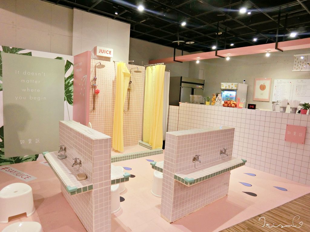 除了座位可愛的讓人會心一笑外,一旁還有夢幻的淋浴間及一些背板可以拍照